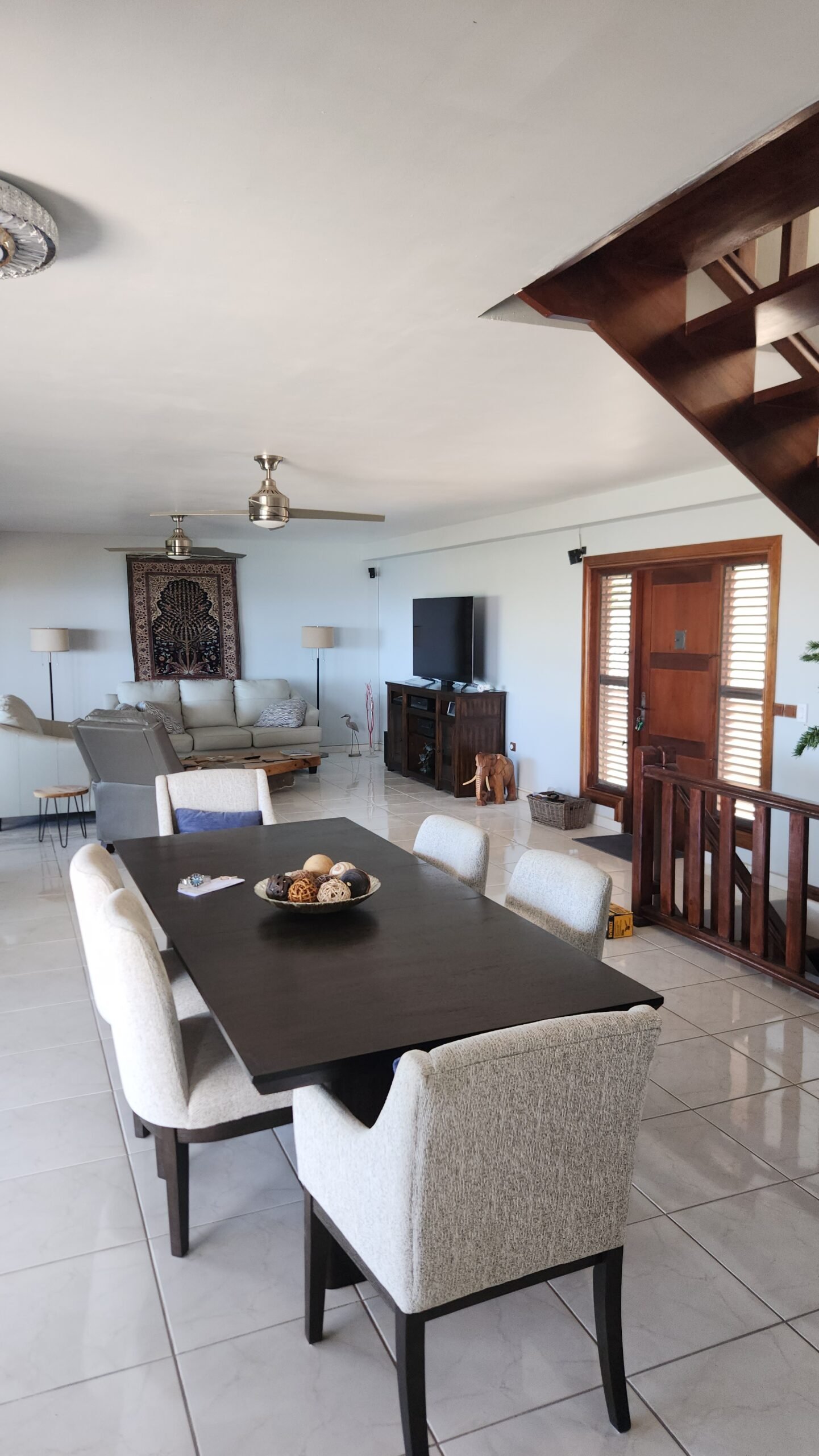 The villa offers a spacious living and dining area, and family room, each thoughtfully designed for both comfort and elegance. Whether gathering for meals or unwinding after a day by the sea, the open flow of the home makes every moment inviting.