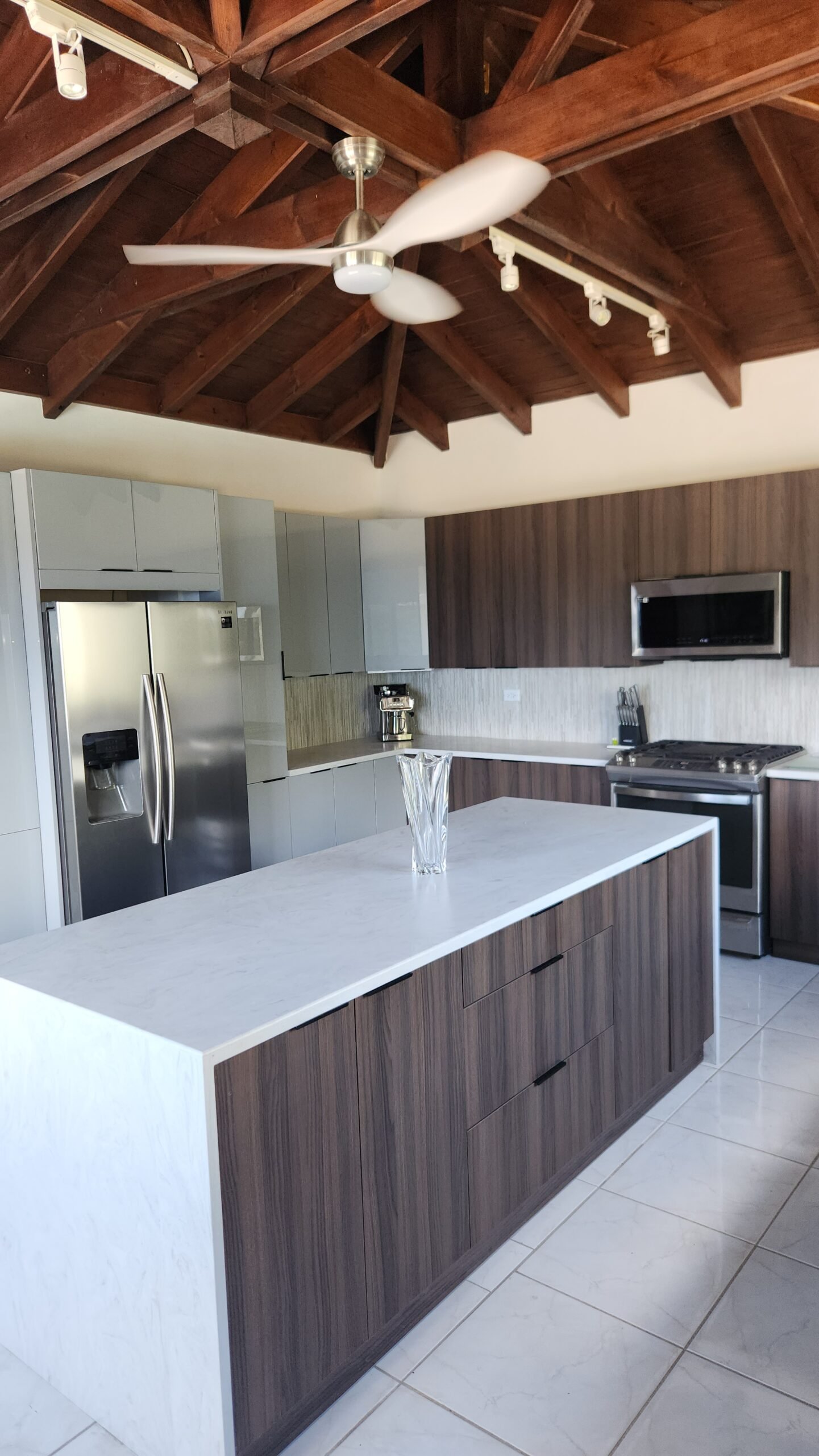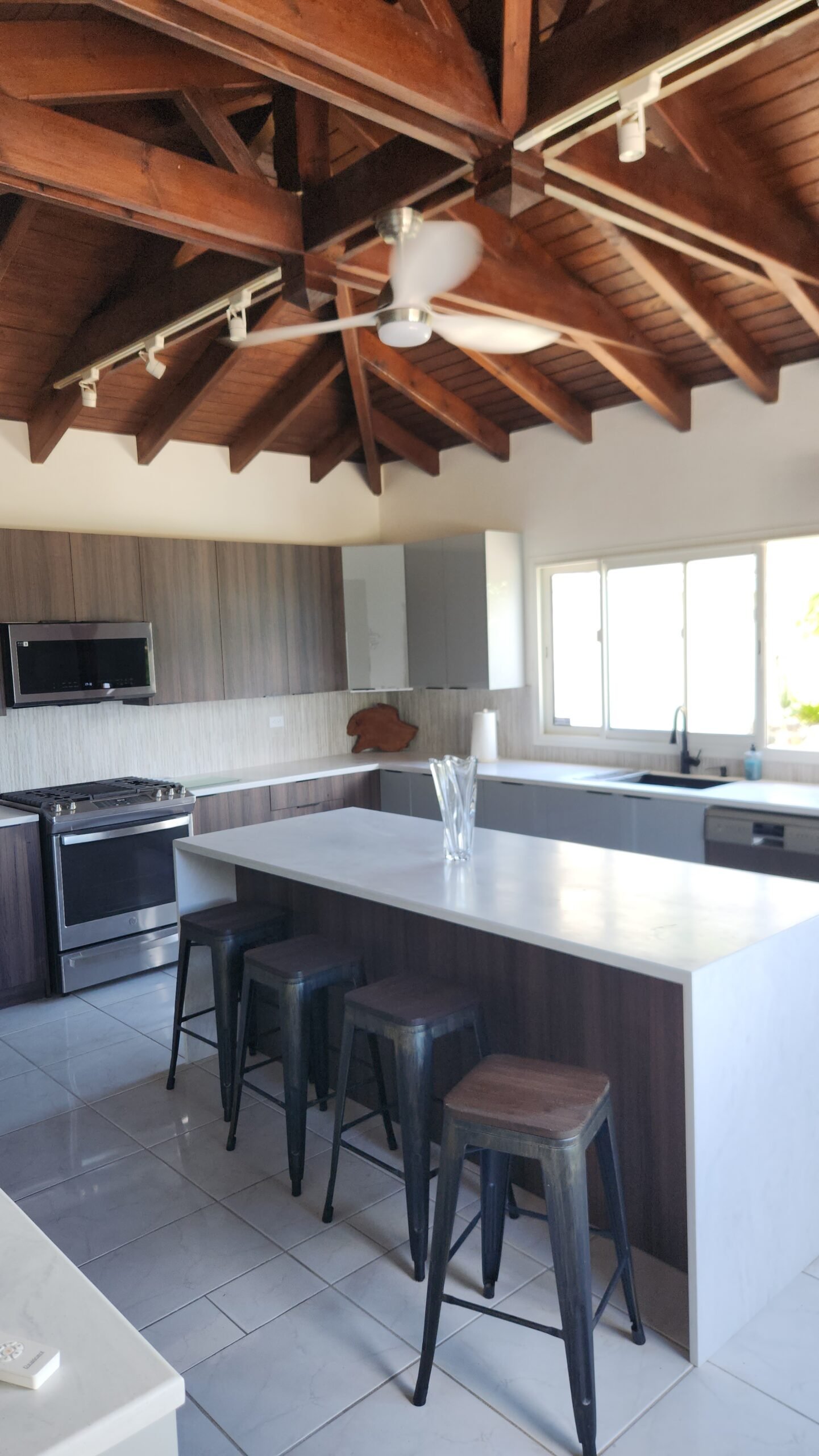 The newly renovated kitchen is a chef’s delight, equipped with modern appliances and generous counter space. Whether you’re preparing a casual breakfast or a sunset dinner, everything you need is right at hand.