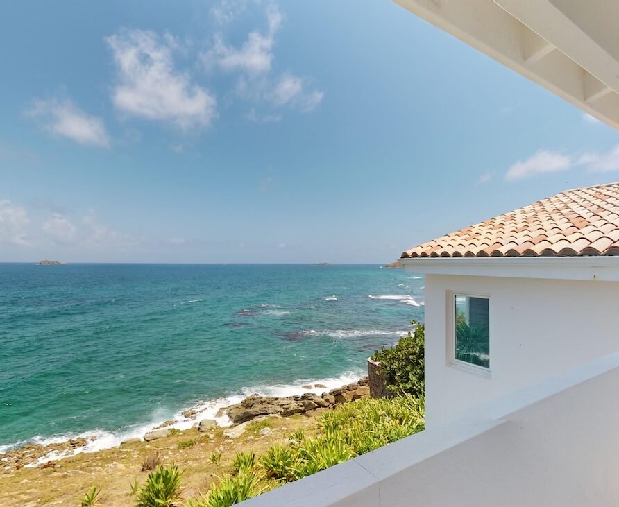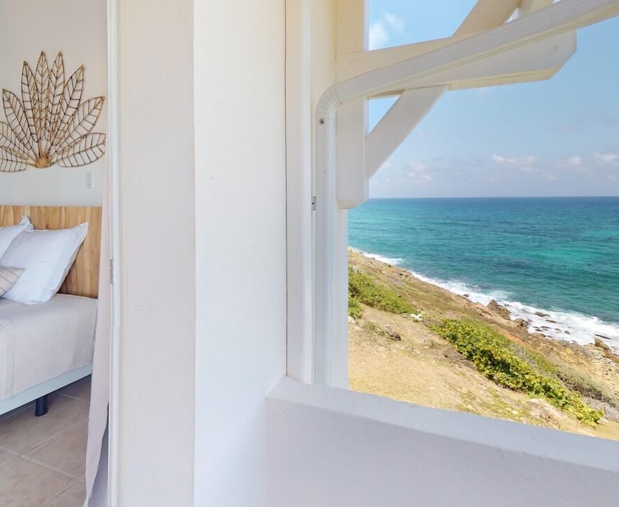 Timeless Tides Villa, perched on the cliffs of Dawn Beach Estates, offers dramatic Atlantic views, a private pool, and elegant Mediterranean living for six guests.